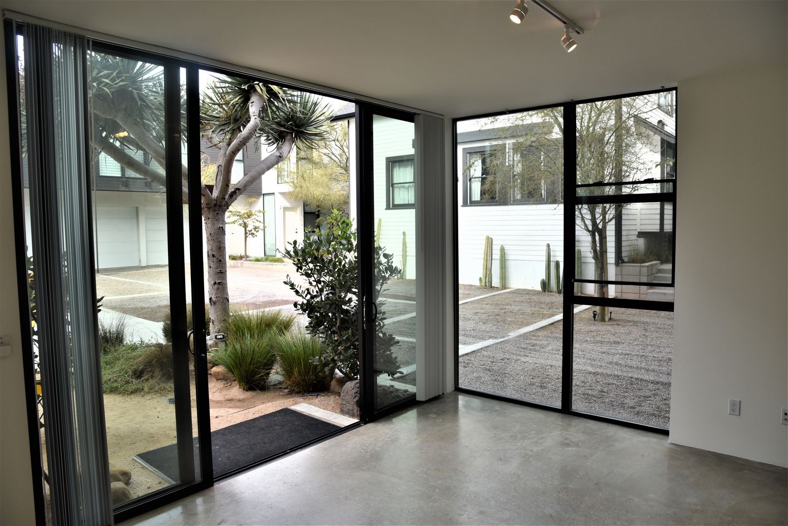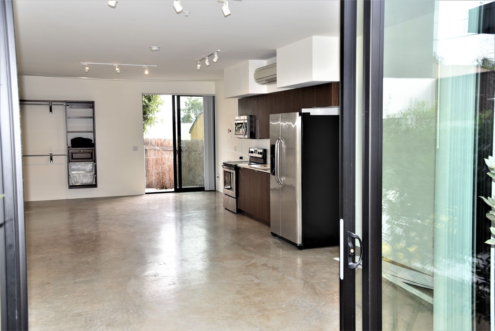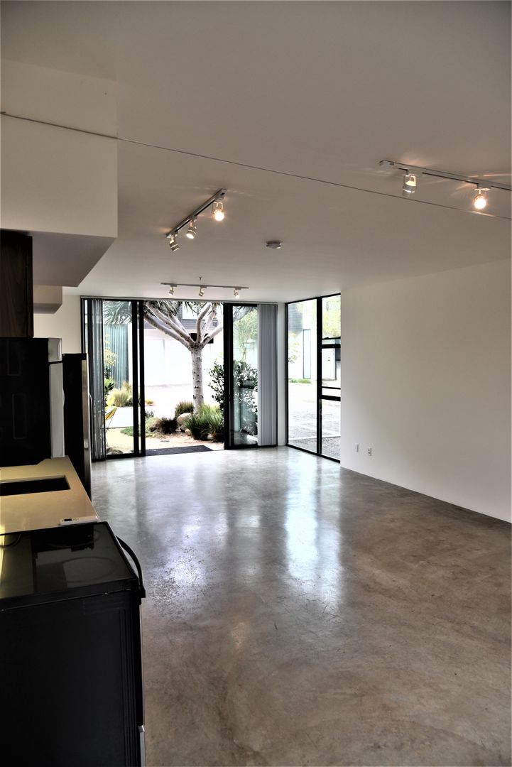 Large bright studio with private back patio space at the very popular Sofia Lofts in Golden Hills. Enjoy floor to ceiling windows and industrial-style cement floors. Stainless steel appliances and unique touches such as closet divider system and kitchen island. Personal solar panels offset electricity costs and the property features Google Webpass internet for a flat rate of $45 per month. Optional personal garage space may be available for $150 per month.