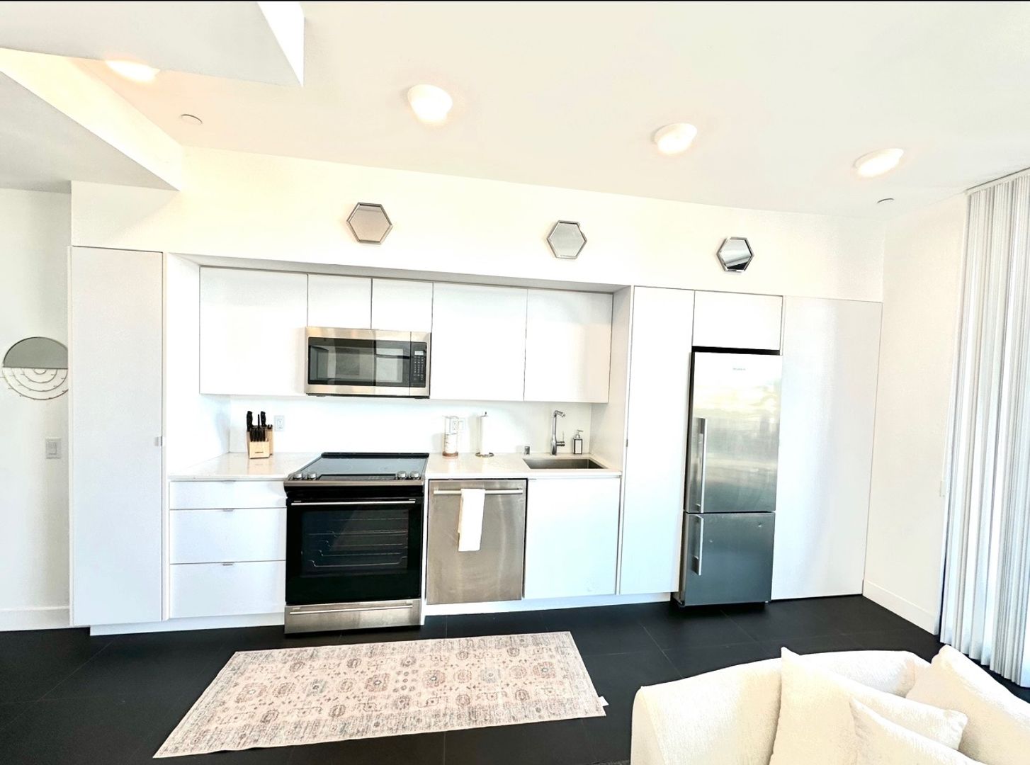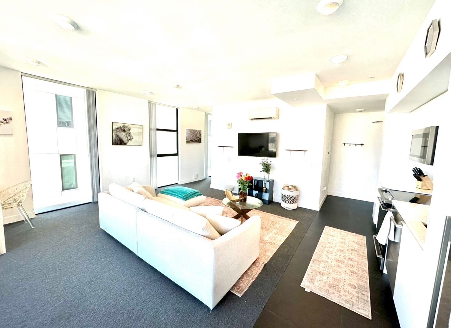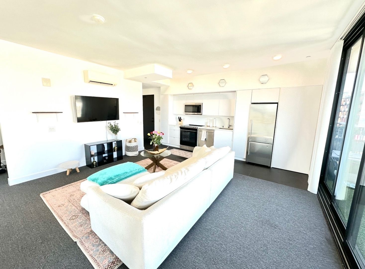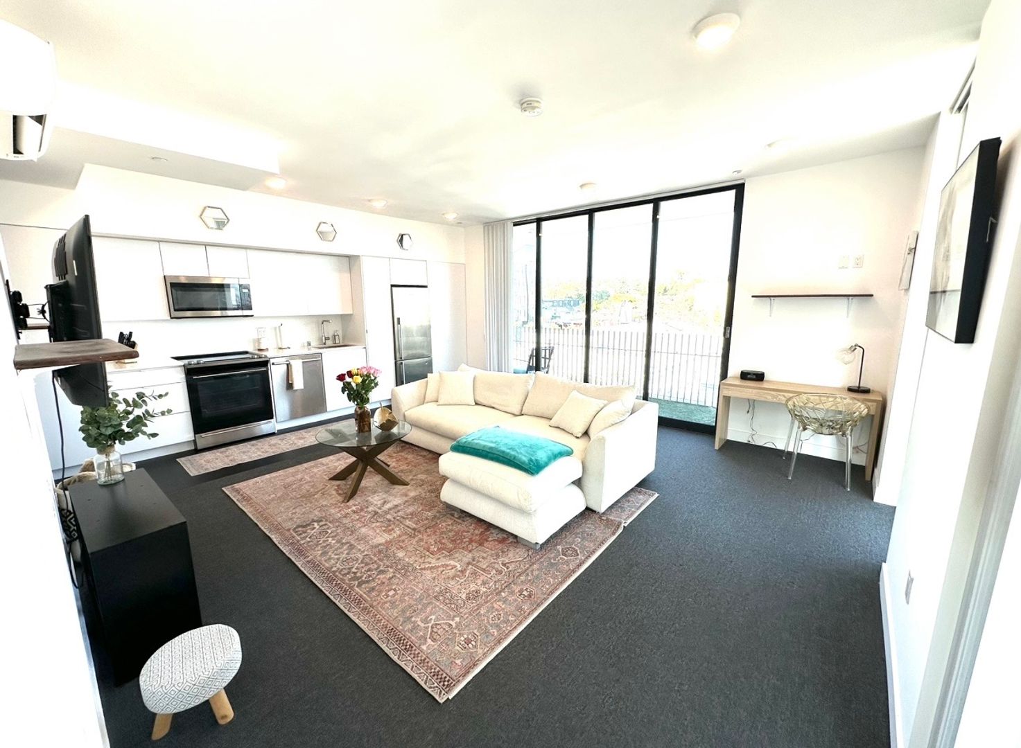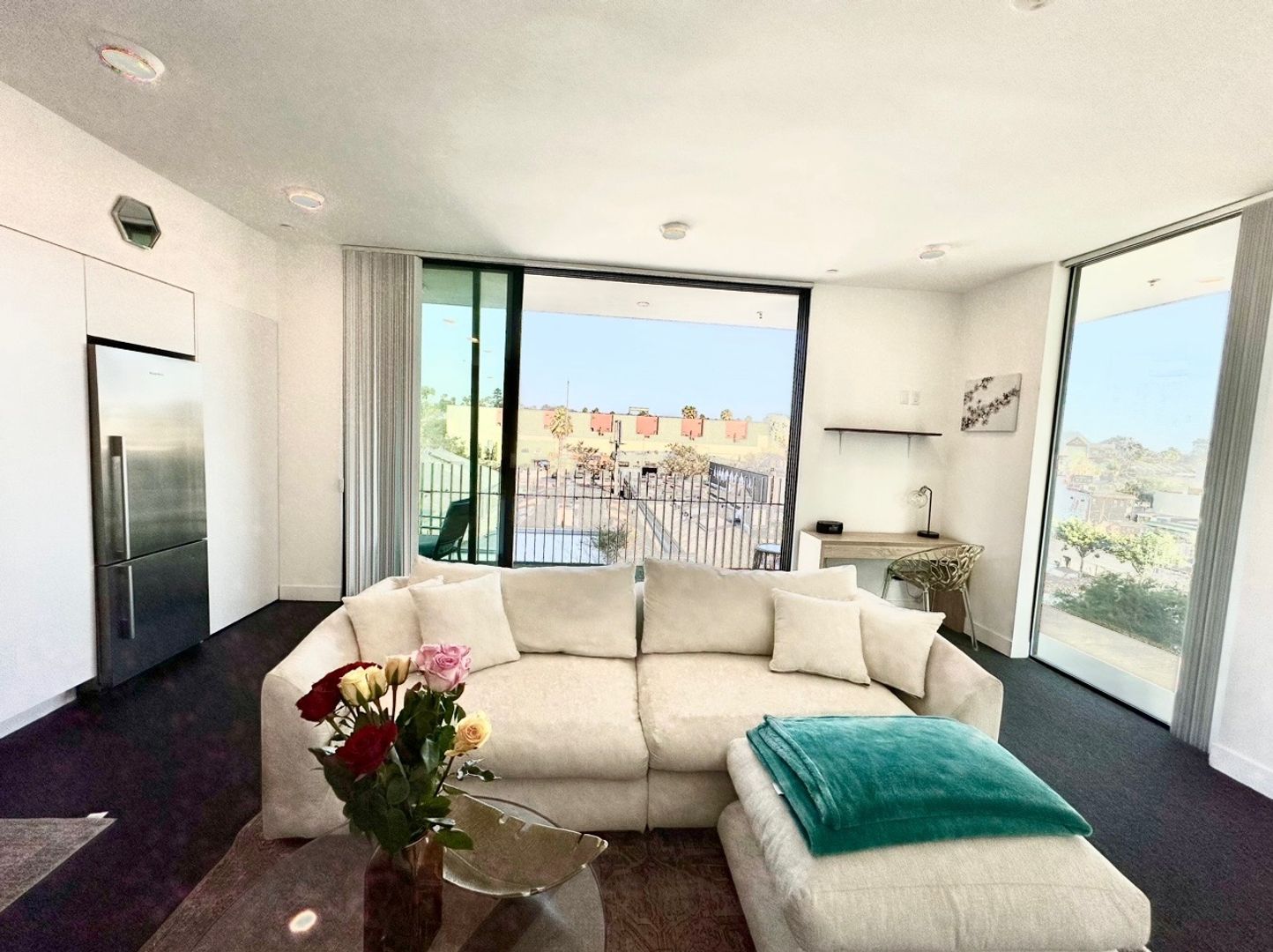 Located in east village, great walking distance to the padres stadium and fantastic restaurants, bars, and live music all within a few blocks. Apartment comes with tall beautiful windows that allow an abundance of natural light. Kitchen comes with updated appliances, clean and modern style. Although this apartment is considered a studio it feels more like a one bedroom as there is a bedroom nook tucked away from the main living/kitchen area. Apartment is roughly 600 square foot but feels much more spacious with all the natural light. In unit A/C and heater. Washer/Dryer in unit as well. Views of the city, lots of natural light!