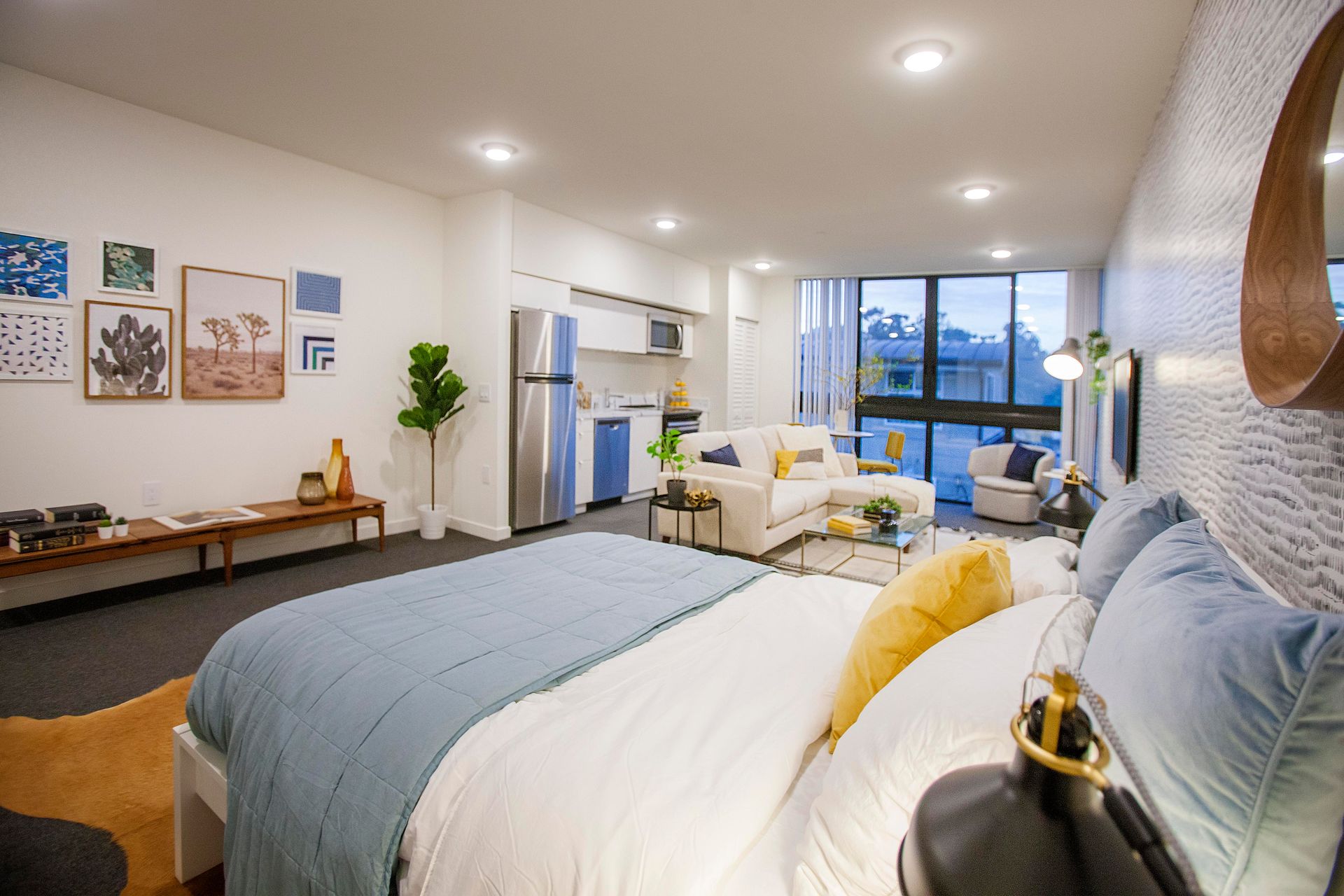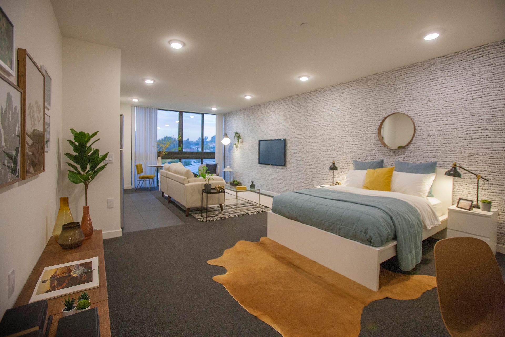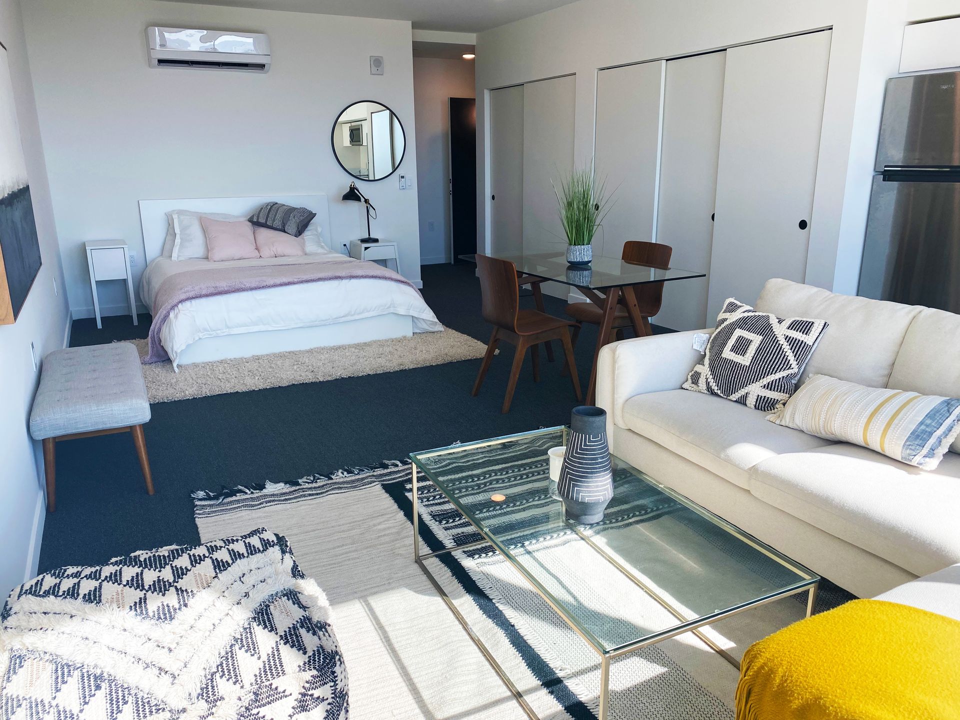 Large, bright studio with a wall of windows and private balcony to enjoy views of Maple Canyon. Stainless steel appliances, quartz countertops, dishwasher, washer/dryer, AC and heat all in-unit. Community courtyard with firepits, seating, barbecues. Gated community. Easy access to freeways, Little Italy, airport, downtown, Hillcrest, etc. Free, easy neighborhood parking. Reserved garage parking may be available for an additional $150 per month - inquire with management.