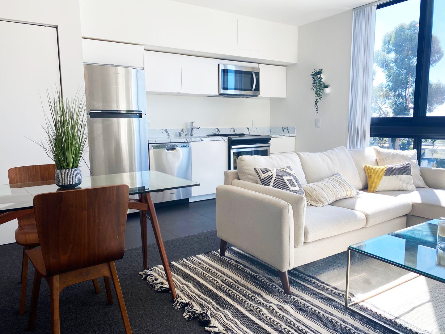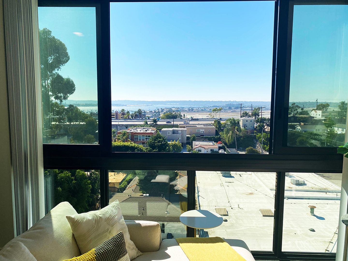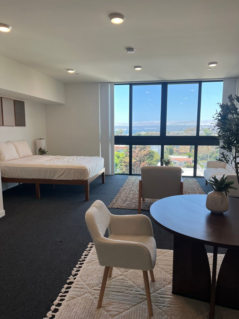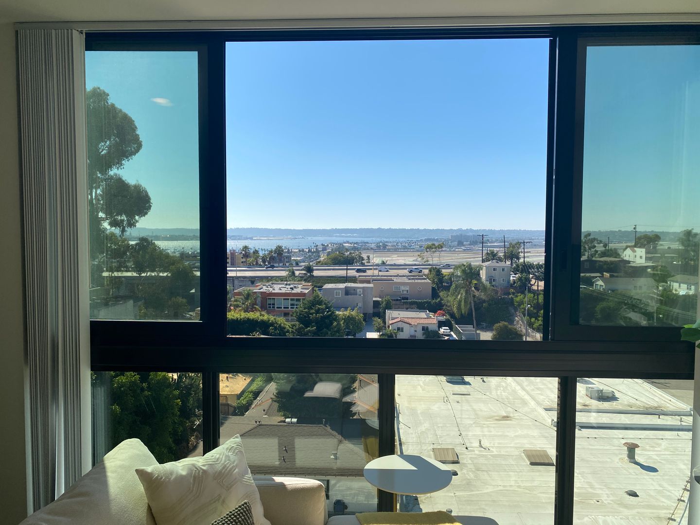 Large, bright studio with a wall of windows to enjoy stunning views of the San Diego Bay. Stainless steel appliances, quartz countertops, dishwasher, washer/dryer, AC and heat all in-unit. Community courtyard with firepits, seating, barbecues. Gated community. Easy access to freeways, Little Italy, airport, downtown, Hillcrest, etc. Free, easy neighborhood parking. Reserved garage parking may be available for an additional $150 per month - inquire with management.