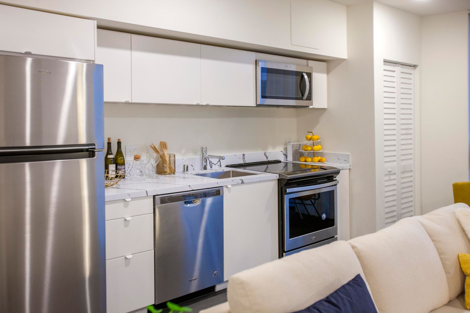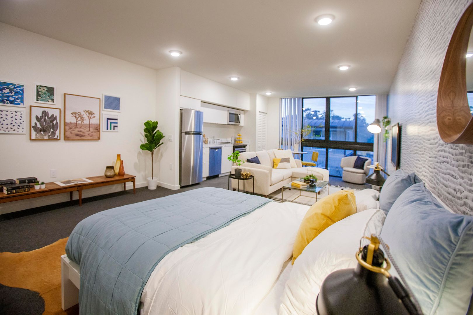 Large, bright studio with a wall of windows to enjoy views of Maple Canyon. Stainless steel appliances, quartz countertops, dishwasher, washer/dryer, AC and heat all in-unit. Community courtyard with firepits, seating, barbecues. Gated community. Easy access to freeways, Little Italy, airport, downtown, Hillcrest, etc. Free, easy neighborhood parking. Reserved garage parking may be available for an additional $150 per month - inquire with management.